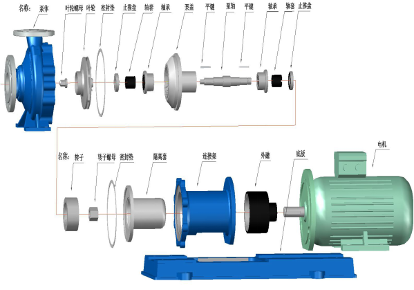 而傳統(tǒng)型CQB型不銹鋼磁力泵: