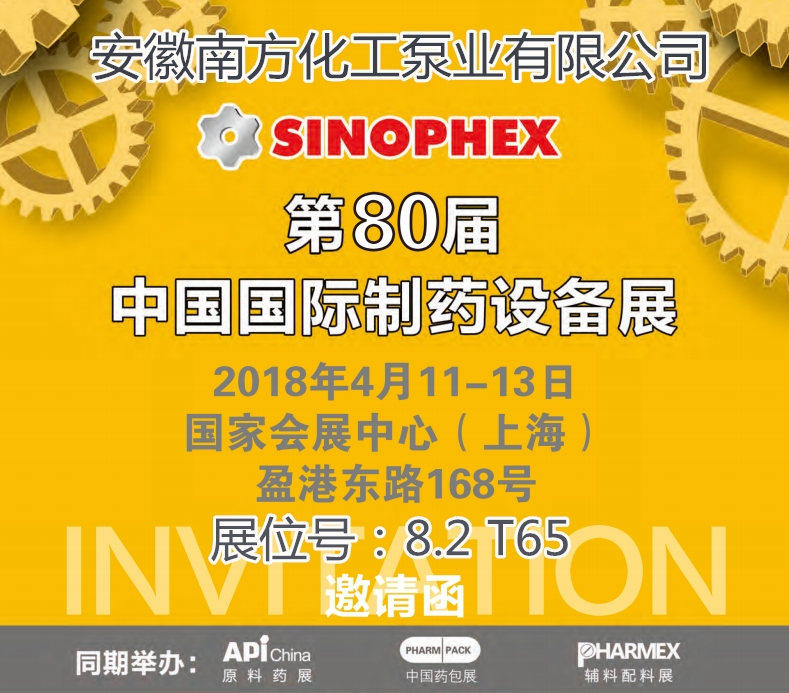安徽南方化工泵業(yè)隆重邀請(qǐng)您來(lái)參觀第80屆中國(guó)國(guó)際制藥設(shè)備展