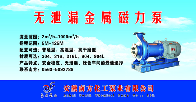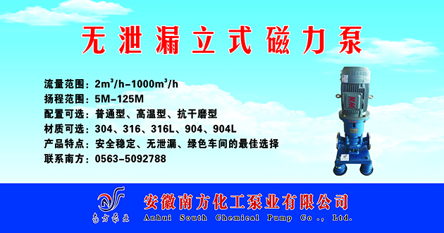 今天是2026年4月27日 星期一,歡迎光臨本站 安徽襯氟磁力泵,安徽氟塑料離心泵生產(chǎn)廠家,安徽耐腐蝕磁力泵,安徽氟塑料磁力泵廠家,不銹鋼磁力泵定制,襯氟泵定制廠家,耐腐蝕化工泵定制廠家|安徽南方化工泵業(yè)【官方網(wǎng)站】 網(wǎng)址: m.mifufilm.com